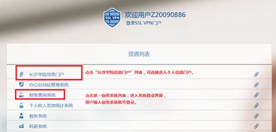 (1) 若点击长沙学院信息门户列表,直接进入个人信息门户,如下图所示.