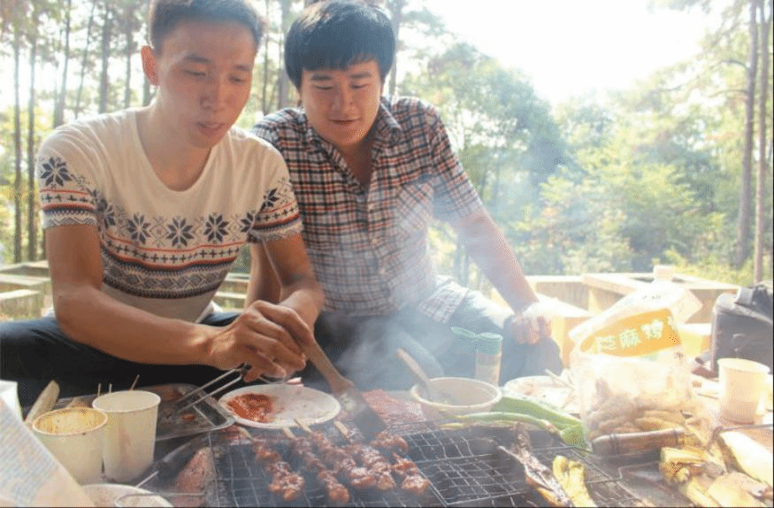天公作美,早上9点半,全体成员怀着激动兴奋的心情乘车向目的地出发。经过30分钟左右的车程到达园林生态园,在组织者的带领下到达烧烤区,各小组就位之后,成员们都跃跃欲试在烤炉旁心急的操练起来,各种食材都摆上了烤炉,一边刷油蘸酱,一边不停翻滚着食物,烧烤区烟雾缭绕。